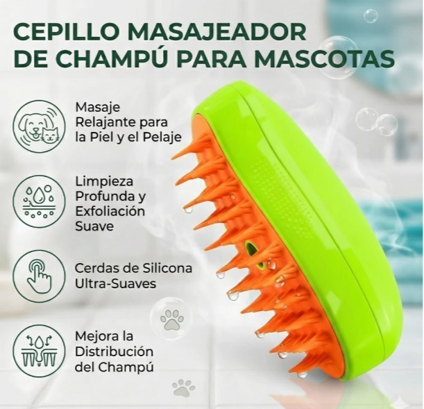 El baño de tu mascota, más fácil que nunca. El cepillo a vapor elimina pelo suelto, suciedad y bacterias en un solo paso con tecnología de vapor caliente, sin stress para tu perro o gato.