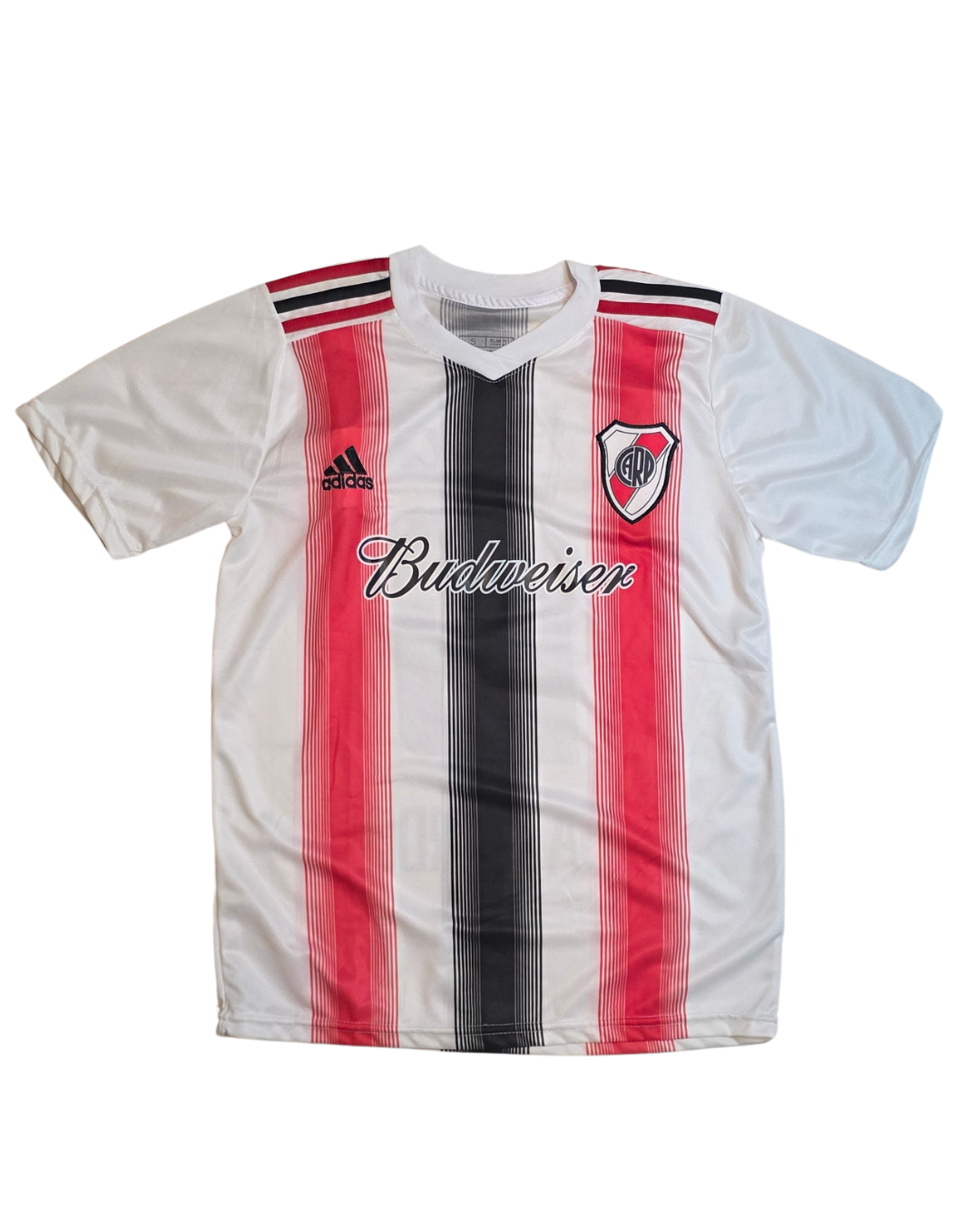 DESCRIPCIÓN: ¡Un clásico inolvidable del Millonario! Llevate la icónica camiseta suplente de River Plate del año 2004. Ese recordado diseño negro con la banda roja y vivos blancos, inmortalizado por figuras históricas y con el mítico sponsor Budweiser en el pecho. Una verdadera pieza de colección que todo hincha de la banda quiere tener.